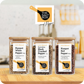 Our selection at The Salt Box goes beyond conventional sea salt - we house an extensive range of gourmet food salts, peppercorns, and innovative salt-infused products. Each variant offers a unique flavour profile that can elevate your cooking experience. From exotic lemon and lime-infused sea salts (perfect for enhancing seafood dishes), to robust Extra Bold and Hickory Smoked Salts that add depth to your risottos and creamy dishes - we have you covered.