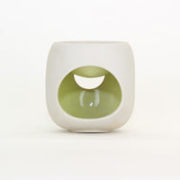 Experience the artistry of our handcrafted ceramic burner, meticulously fashioned with raw white clay on the exterior and adorned with vibrant glazing on the interior.